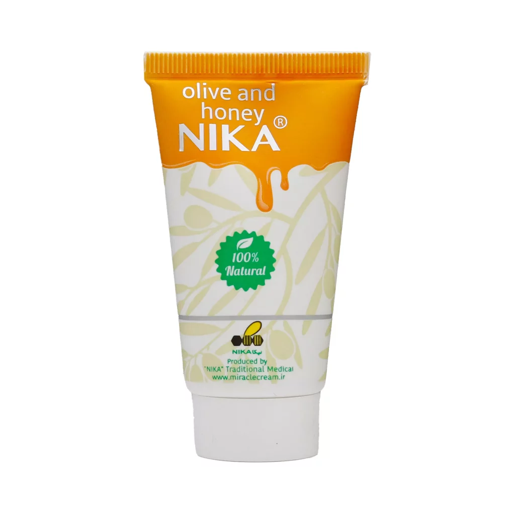 کرم الیو و هانی نیکا (Olive and Honey) جهت بهبود کامل زخم بستر و ترمیم محل سوختگی از ترکیبات 100 درصد طبیعی در قالب تیوپ های 30 گرمی تولید می شود. فرمولاسیون این کرم از مواد موثره عسل، بره موم و روغن زیتون تشکیل شده است که این ترکیبات در ترمیم جای بخیه و محل جراحات نقش تاثیرگذاری دارند. کرم ترمیم کننده نیکا از خاصیت لایه برداری ملایم برخوردار بوده به طوری که موجب حذف سلول های مرده از اطراف زخم می شود و رطوبت محل زخم ها را کاهش می دهد.